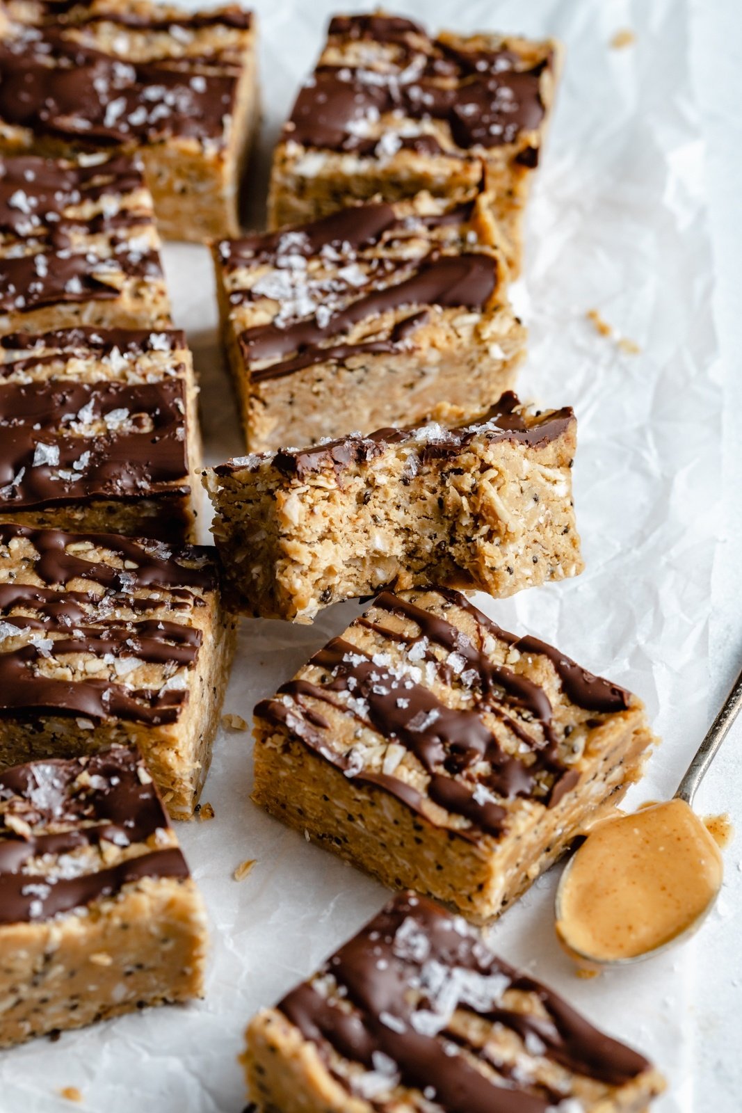 Coconut & Chocolate Peanut Butter Protein Bars: 7.4g protein