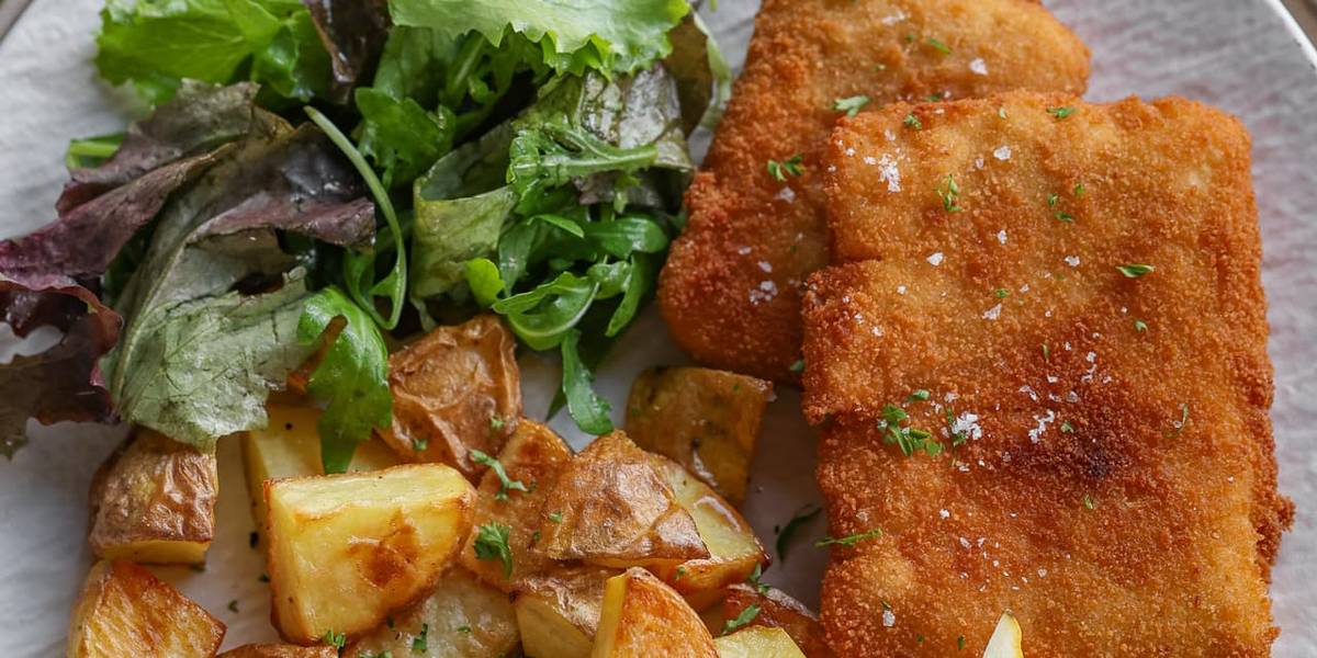 Schnitzel, originally from Austria, is traditionally a thin, breaded cutlet fried to golden perfection. Our vegan version proves comfort food can be plant-based and just as satisfying. Crispy on the outside, tender on the inside – everything you love about schnitzel, made with wholesome ingredients. Freezing and thawing silken tofu transforms its texture, creating tiny pockets that, once pressed, leave it dense, chewy, and reduced to about a quarter of its original volume – perfect for this classic dish.