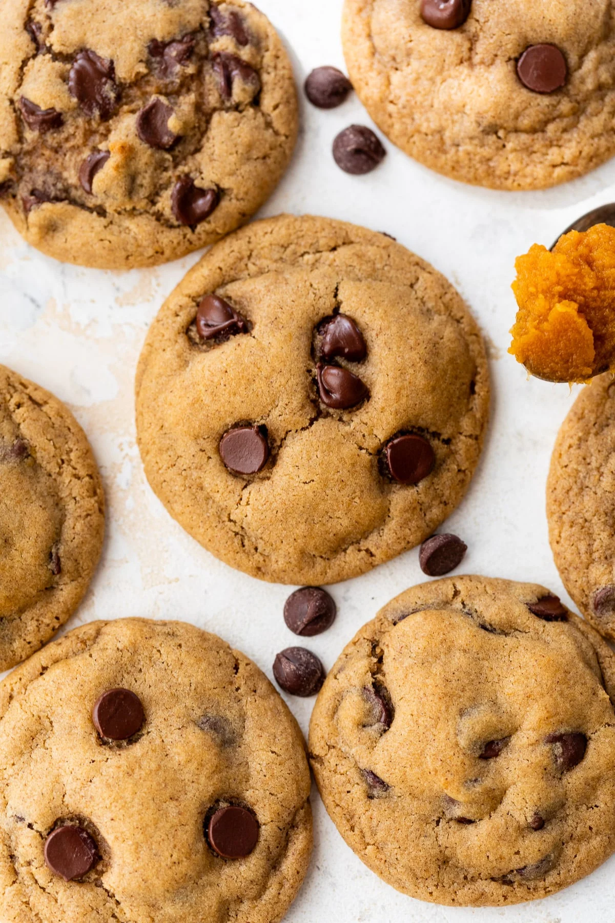 Seasonal twist on a classic – These chocolate chip pumpkin cookies are as chewy and chocolatey as classic chocolate chip cookies, but taste like pumpkin pie!