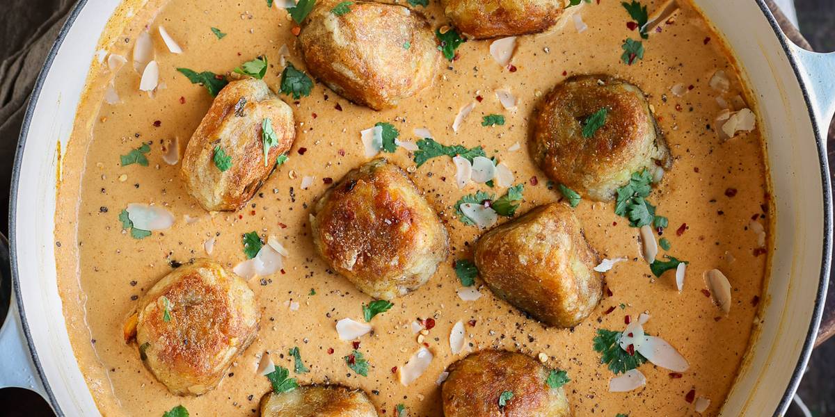 Aloo Kofta is a popular Indian dish featuring tender potato dumplings in a rich, aromatic, and creamy sauce. In our vegan version, the potato koftas are made with warm, flavourful spices and lightly fried until golden. Served with rice, this comforting curry makes for a satisfying and wholesome meal.