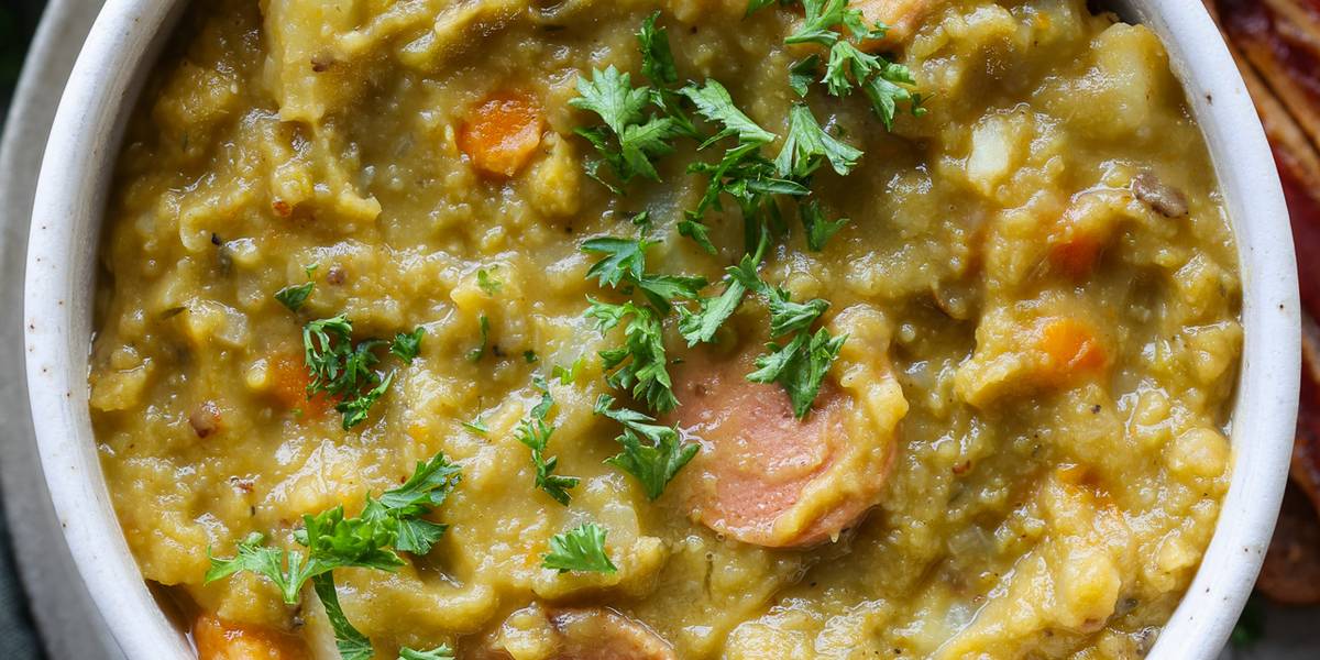 Erwtensoep, a traditional Dutch dish also known as pea soup, is a thick and hearty soup made with split peas, celeriac, and leeks, often accompanied by smoked sausage. Traditionally served with rye bread topped with bacon, cheese, or butter, we’ve recreated this comforting winter classic using plant-based alternatives for the traditional ingredients.