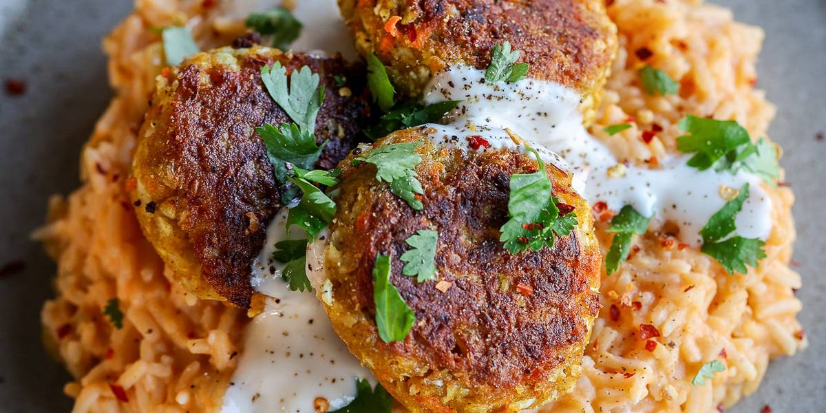This dish has a few components and it requires a bit of time to prepare. But the result is definitely worth it. You will get a delicious meal, starting with creamy, pumpkin rice and crispy, flavourful veggies koftas. We topped it with some yogurt and lemon juice to balance the flavours and add some zing to the dish. Perfect for a cozy and wholesome dinner.