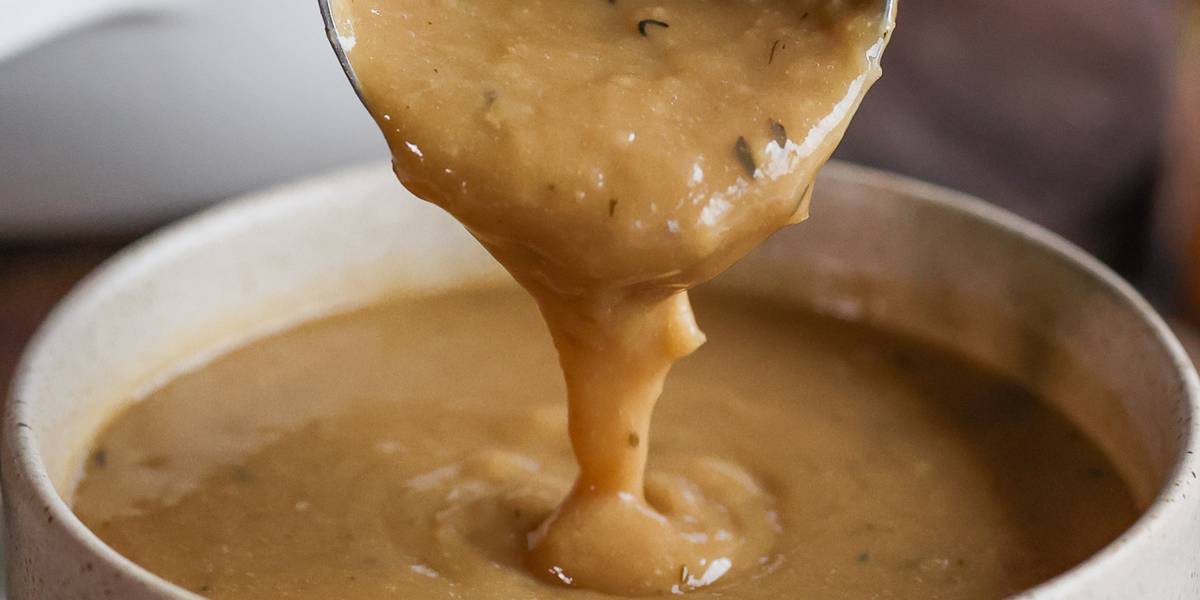 Making a gravy recipe without dairy involves a few big flavour-makers: caramelized onions, aromatic garlic, rich vegan butter, good quality vegetable stock, a slight cheesy-ness from nutritional yeast, and umami-richness from miso paste and soy sauce.