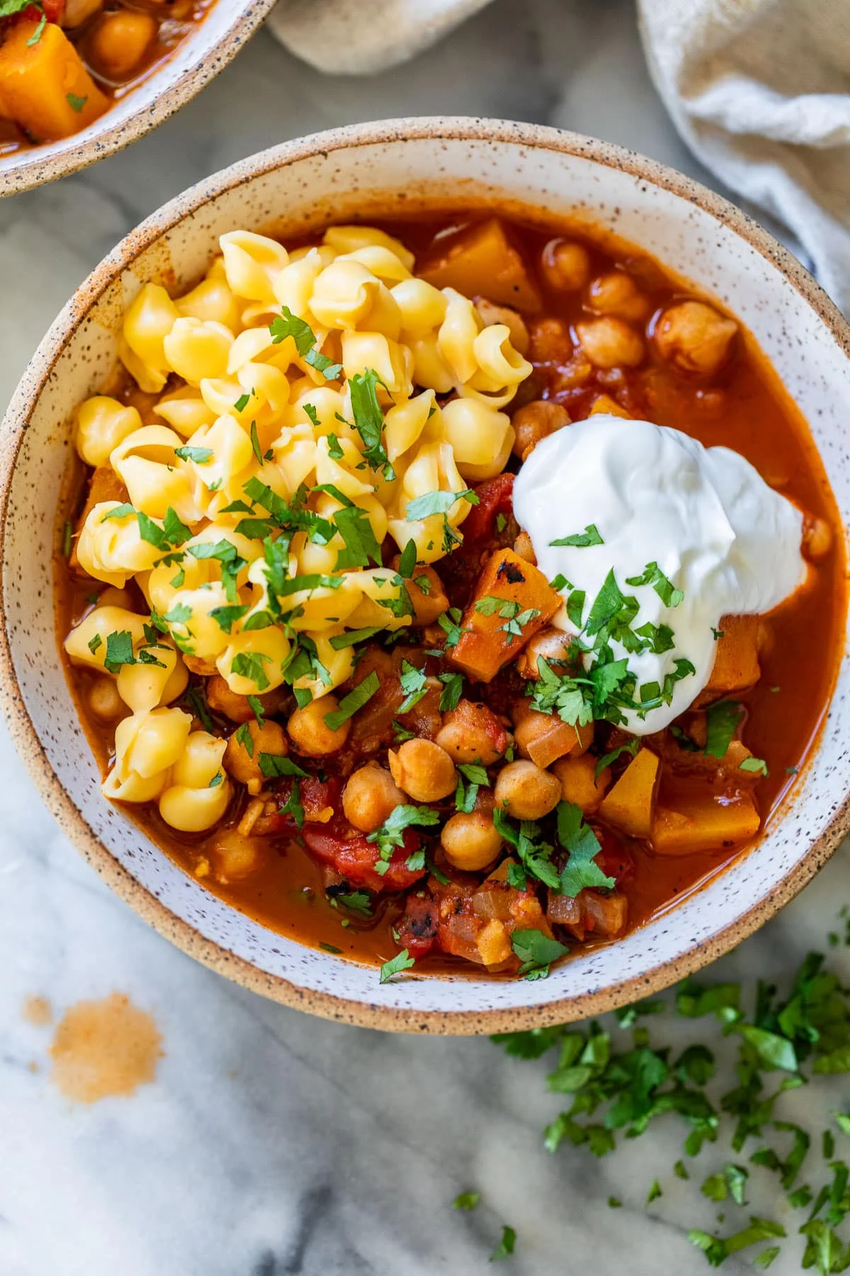 Chili seasonings – The smoky, savory, and subtly spicy flavors in this butternut squash chickpea chili come from a blend of chili powder, smoked paprika, and cumin.