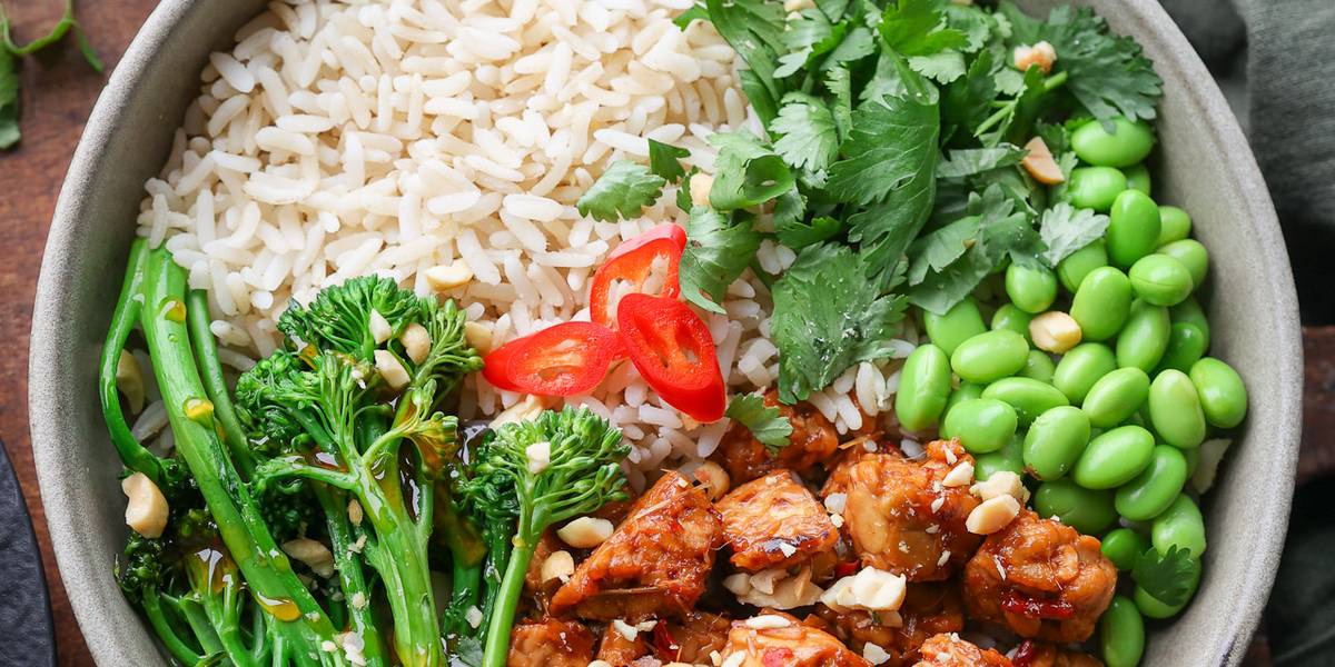 This bowl is a love letter to the bold, zesty flavours of Southeast Asian cuisine. The lemongrass glaze brings a perfect harmony of tangy, spicy, and umami flavours. Paired with sweet chili broccolini, edamame beans, and nutty brown rice, it’s a bowl that is packed with protein and very nourishing.