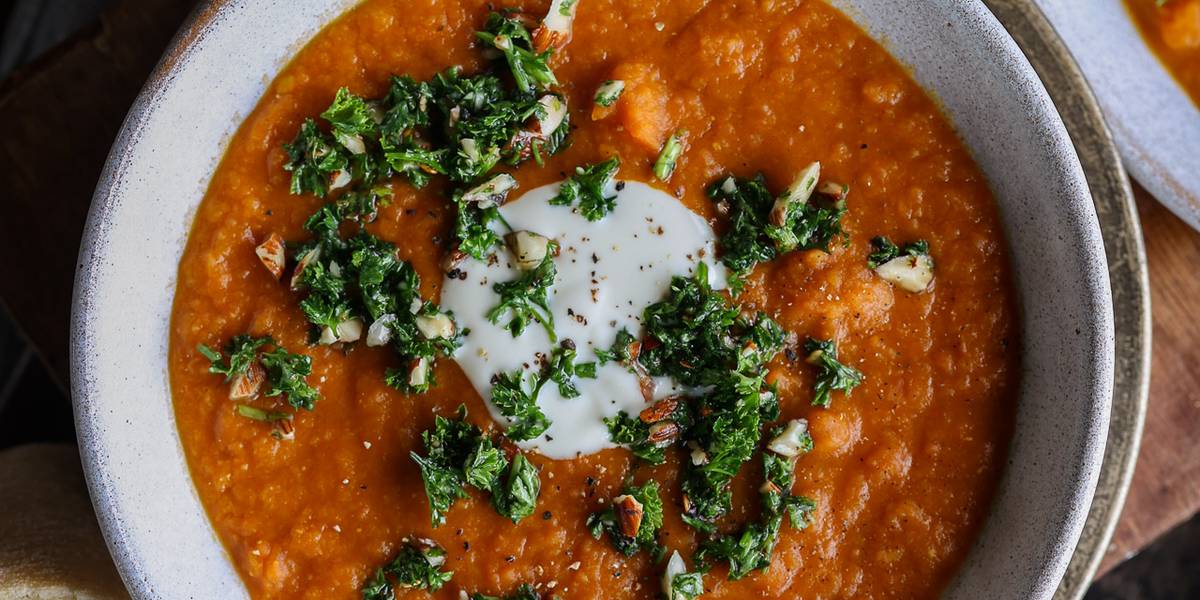 This soup is hearty, comforting, and vibrant, featuring a nutritious blend of lentils, carrots, and aromatic spices. We’ve elevated it with a crunchy gremolata topping made from fresh parsley, garlic, and roasted almonds. It’s perfect for a cozy dinner.