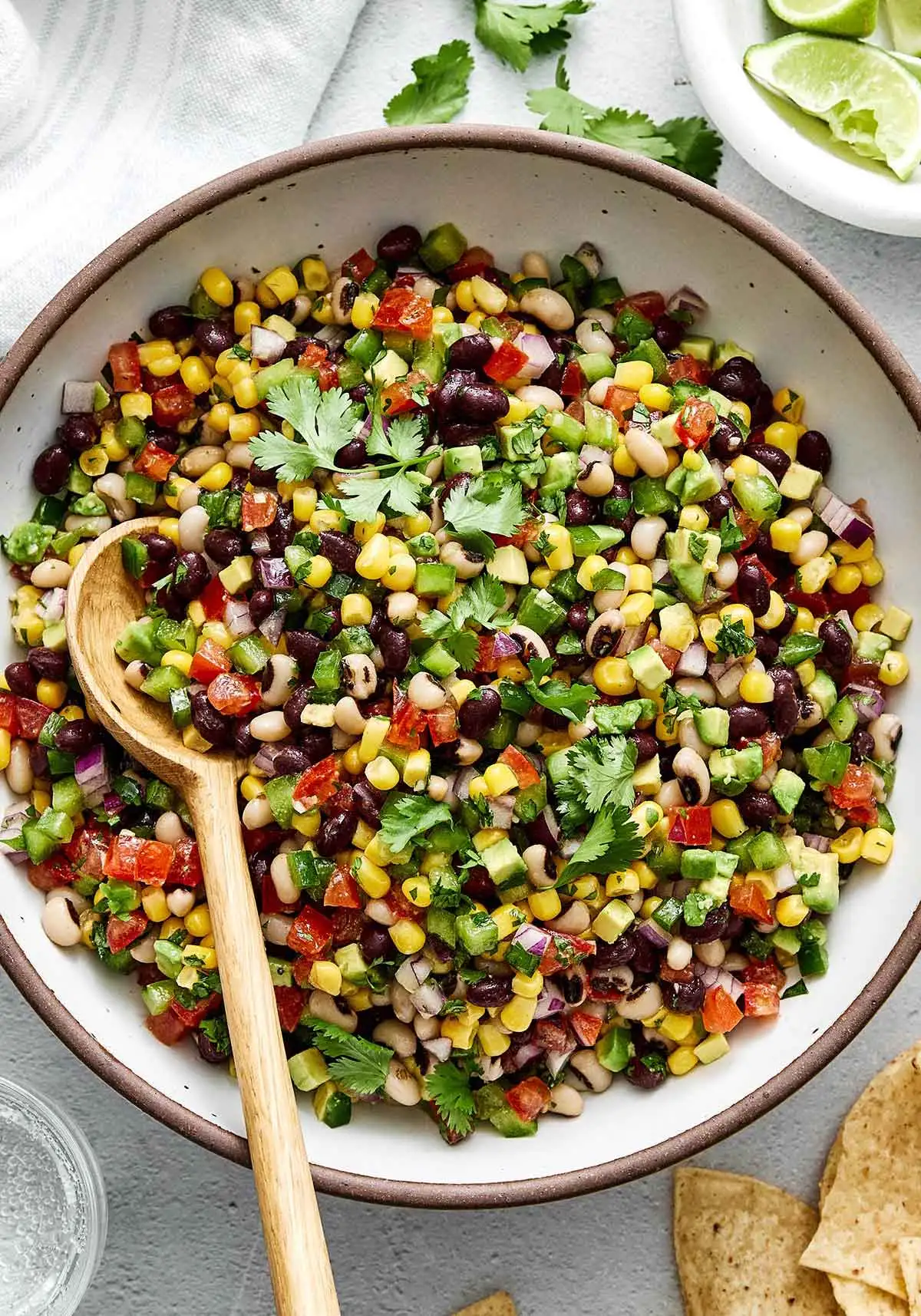 While I enjoy this as a salad, I also love how the combination of beans, veggies, and a zesty dressing doubles as an appetizer dip with tortilla chips! I’d recommend bookmarking this for any summer potluck.
