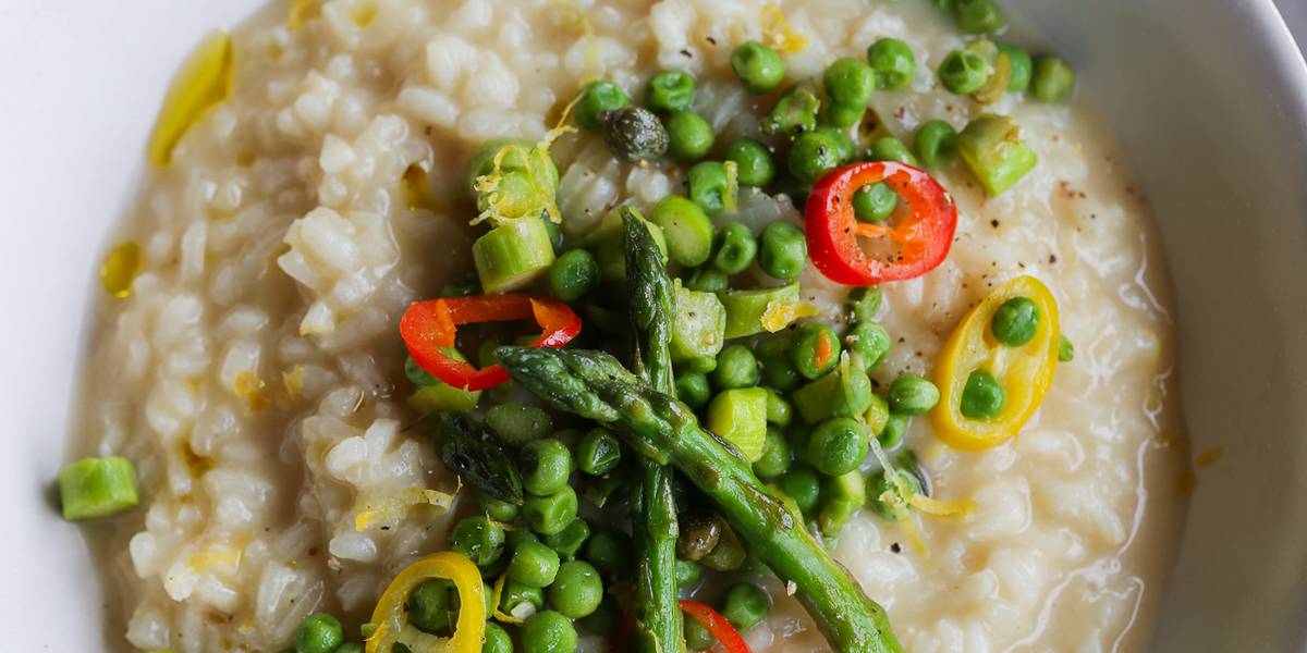 The risotto is rich and creamy without needing any cream, and the lemony asparagus-pea topping makes it feel fresh and vibrant. The miso adds a subtle umami depth, and a little chili gives just the right amount of kick. It’s simple, satisfying, and comes together with mostly pantry and freezer staples.