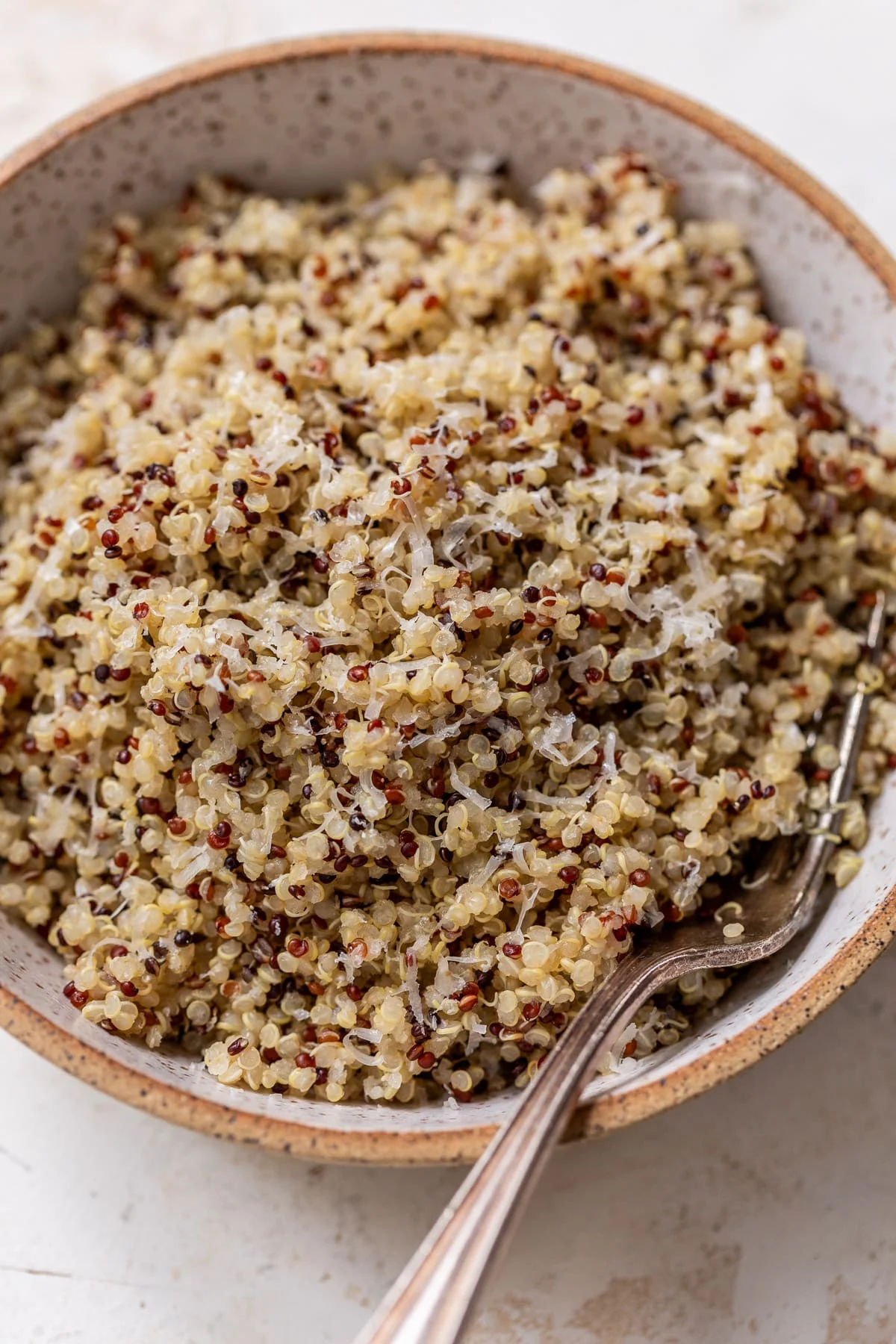 Step 3: Fluff and season. Fluff the quinoa with a fork, then season it with salt, pepper, and Parmesan (or your favorite herbs and seasonings). Serve and enjoy!
