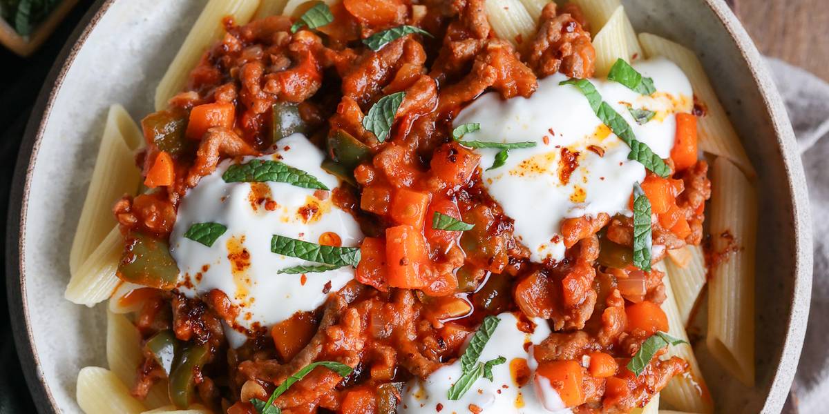 This deconstructed pasta dish transforms the comforting flavours of traditional manti (dumplings) into an easy, modern twist inspired by the viral Turkish pasta trend. Al dente pasta is topped with a rich tomato and vegan mince sauce, garlicky yogurt, smoky chili butter, and fresh herbs. It’s a hearty, flavorful dish perfect for those who love bold, vibrant flavours.